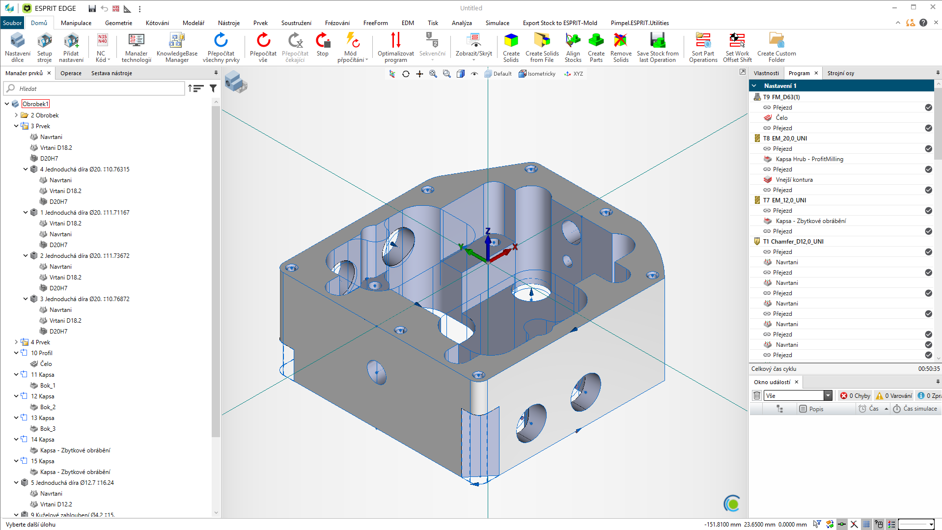 Díky digitálnímu dvojčeti stroje a reálnému NC řízení můžete ověřit každý detail ještě před stisknutím cyklu start.